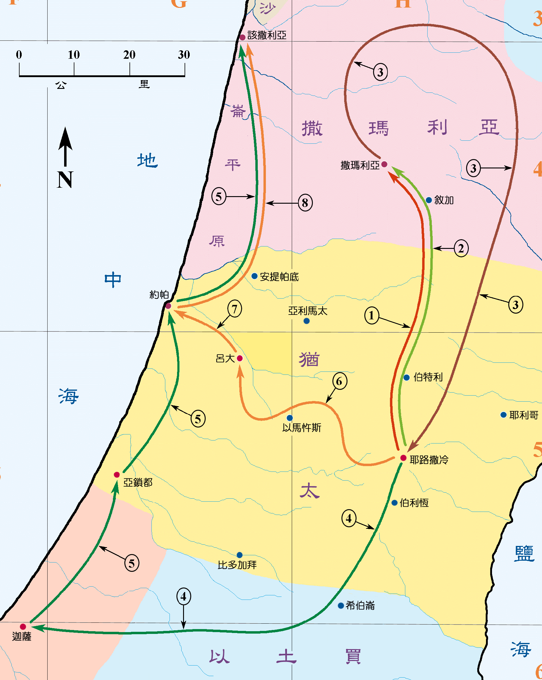 “该撒利亚”(Caesarea)在哪里?请看图一。它在地中海东岸,约帕以北约45公里,离耶路撒冷约87公里。大希律王在主前30年为取代耶路撒冷作为犹太省的首府,就在这里建城和港口,以纪念奥古士督大帝(27BC - 14AD)。城内有圆形剧场、竞技场、剧场(可容万人,今仍然在使用)、公共浴池。。完全是一座希腊化的城市。