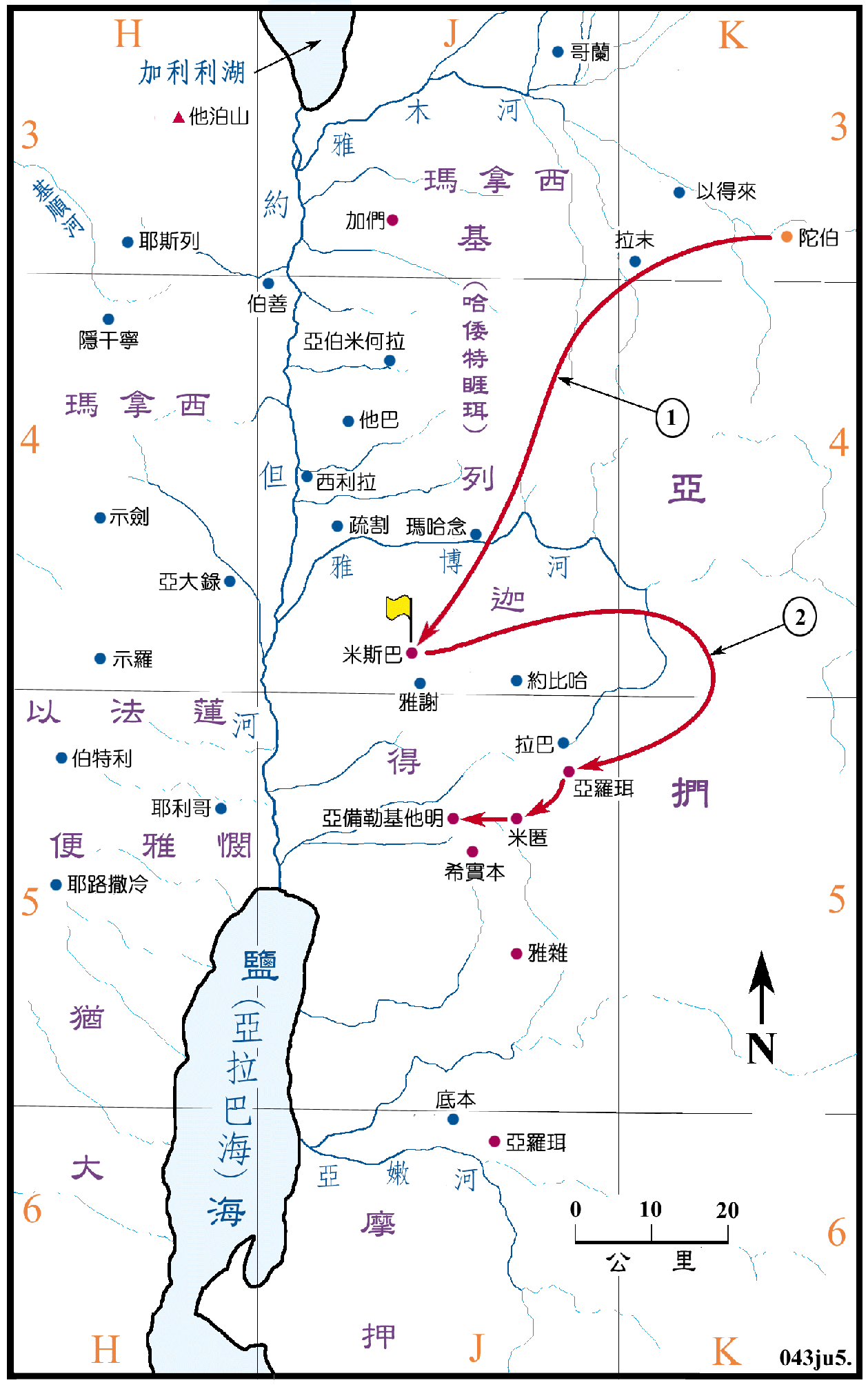 “当时,亚扪人聚集,安营在基列。以色列人也聚集,安营在米斯巴(Mizpeh)。”-- 亚扪人挥军大举进攻以色列,他们聚集在基列(Gilead)。这里的基列指的是整个地区,换句话说,他们其实已经侵入以色列居住的地方。以色列人则安营在米斯巴,它在雅博河南面,约但河东18公里处,在一片高约1100公尺的高原上。(看图一)