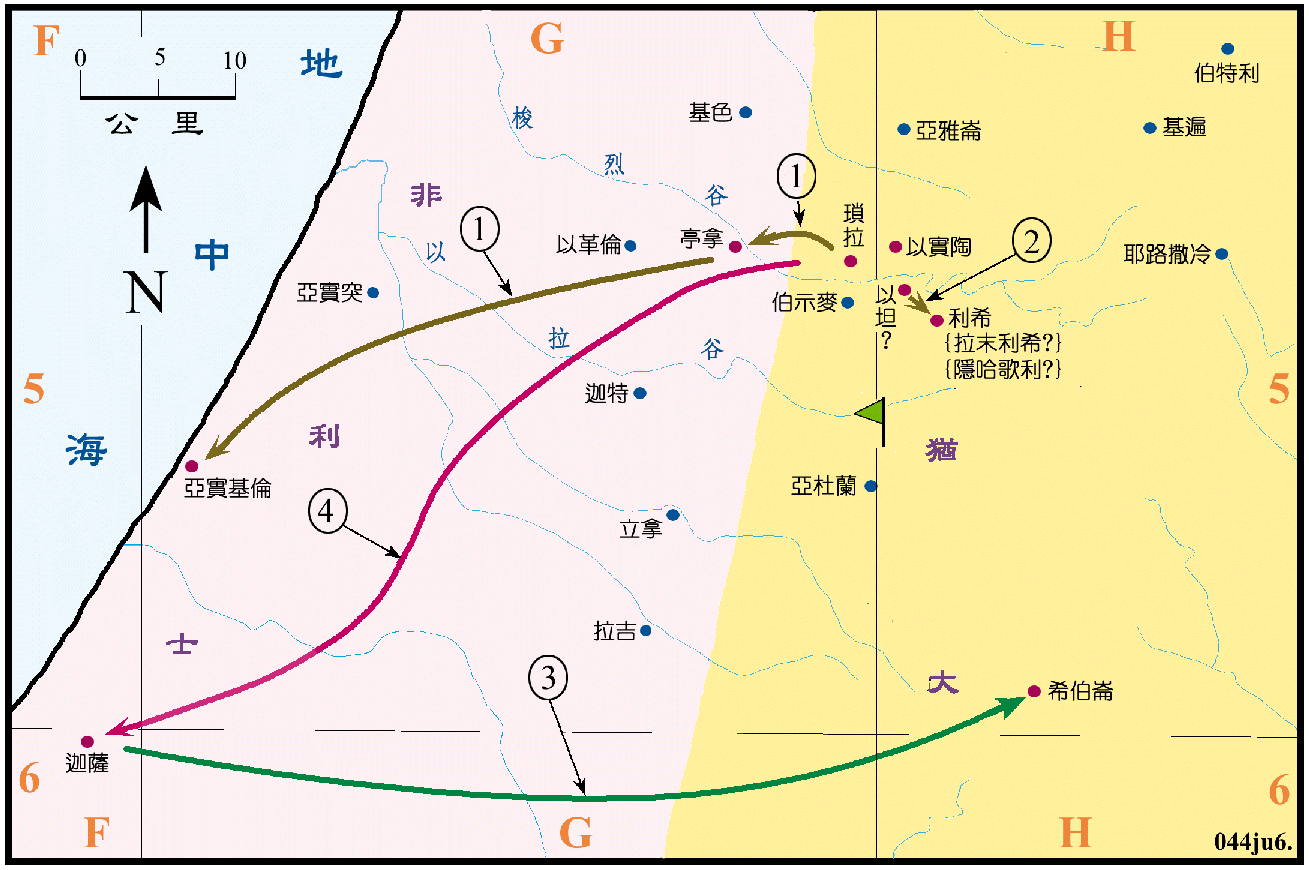 从这章开始,我们看到那些控制巴勒斯坦海岸的非利士人不断地骚扰以色列的支派联盟。过去他们是零零星星地像打“游击战”(士三:31),现在是明目张胆地向迦南的内陆发动攻势,不再满足于据守在海岸的五个城邑。(请看图一) 圣经说,这是因为“以色列人又行耶和华眼中看为恶的事,耶和华将他们交在非利士人手中四十年。”