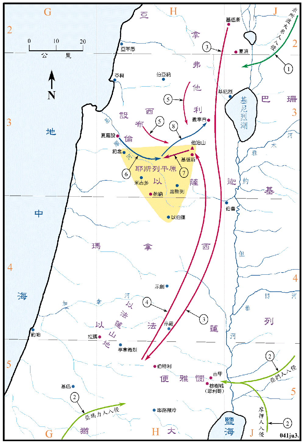 B。奴役:“耶和华的怒气向以色列人发作,就把他们交在美索不达米亚王(Mesopotamia)古珊利萨田(Cushan - rishathaim)的手中。以色列人服事古珊利萨田八年。”-- 谁是古珊利萨田?他是美索不达米亚王,King of Aram-Nataraim。Aram-Nataraim 的原意是“两河之间的亚兰”(创二十四:10),它包括了大部分的古代亚述帝国;它的南面延伸着那后来被称为巴比伦的肥沃冲积土低地。(请看图一)在创十四章,我们曾看过来自这区域的四王与巴勒斯坦死海附近的五王争战的事,那是发生在亚伯拉罕的时代。古珊利萨田从北入侵巴勒斯坦是很有可能的事,虽然在古代的文献里没有记载着个人的名。有的解经家认为“亚兰”(rm)和“以东”(dm)的原文只相差一个字母,而这两个字母在原文是极为相似(参撒下八:12 - 13,王上十一:15,王下十六:6),因此文中的“亚兰”应是“以东”才对,因为以东比较靠近犹大支派的地业,俄陀聂与他们争战比较有可能。“以色列人服事古珊利萨田八年。”-- 以色列受古珊利萨田的奴役,不是单单犹大支派。